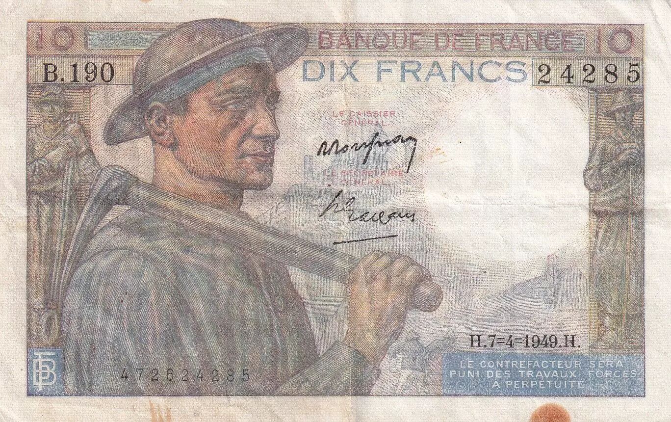 Home > > France 10 Francs Miner - 07-04-1949 - Serial B.190