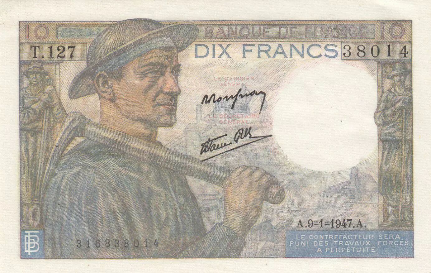 Banknote France 10 Francs Miner - 09-01-1947 Serial T.127 - AU