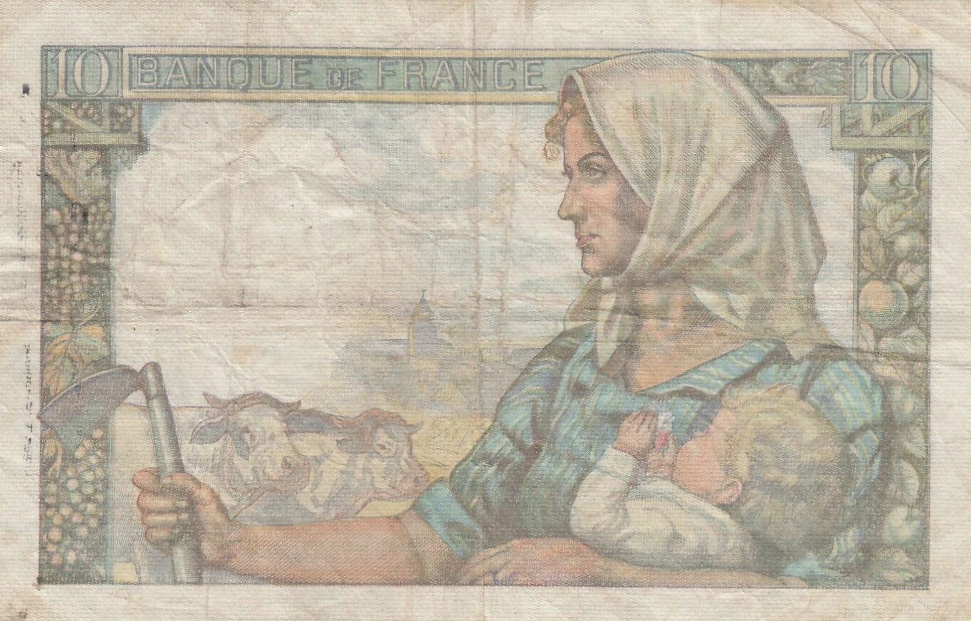 This 10 Francs banknote testifies to the historical and economic context of France in 1943.