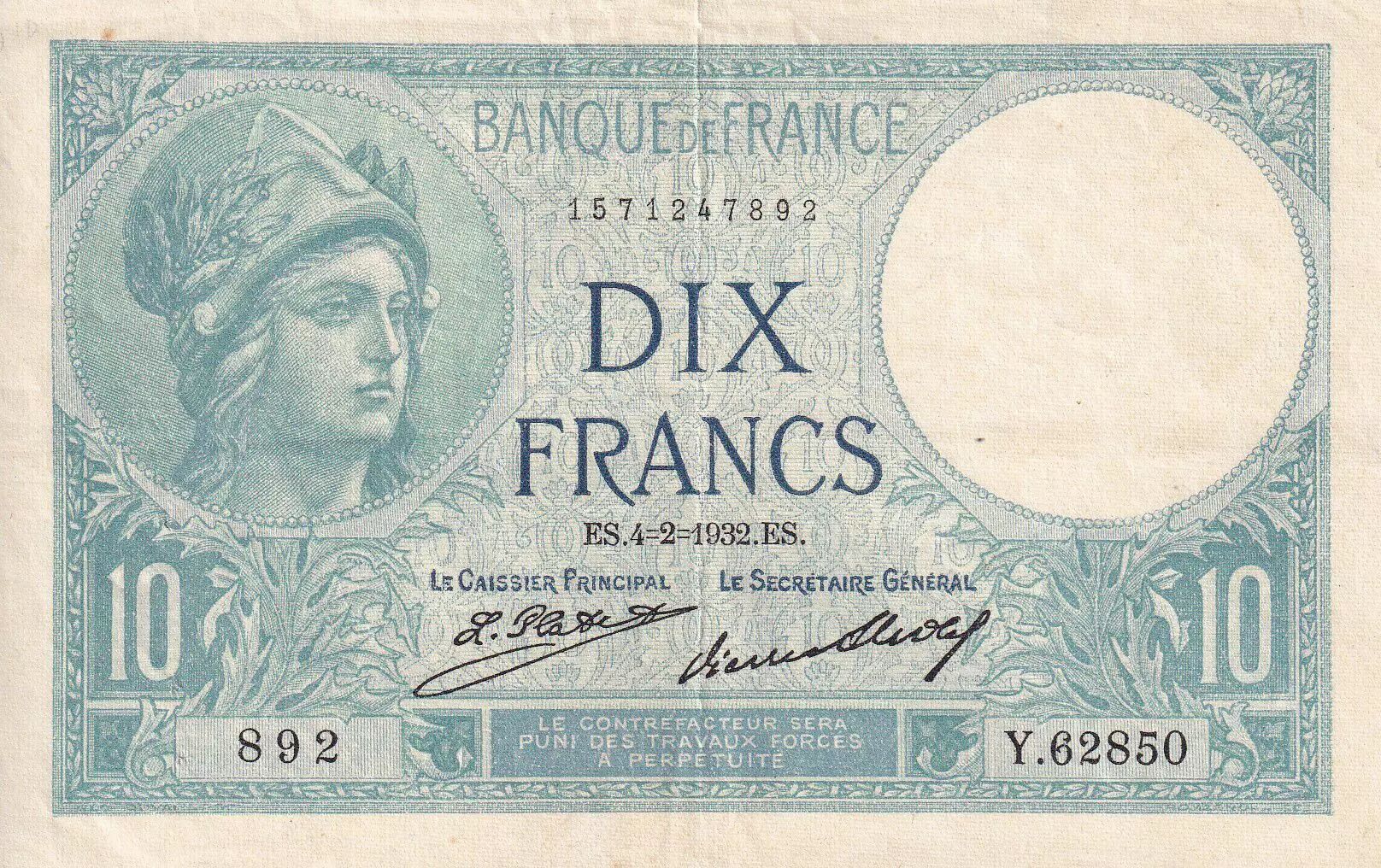Accueil > Archivage > France 10 Francs - Minerve - 04-02-1932 - Série Y.62850 - SUP - F.06.16