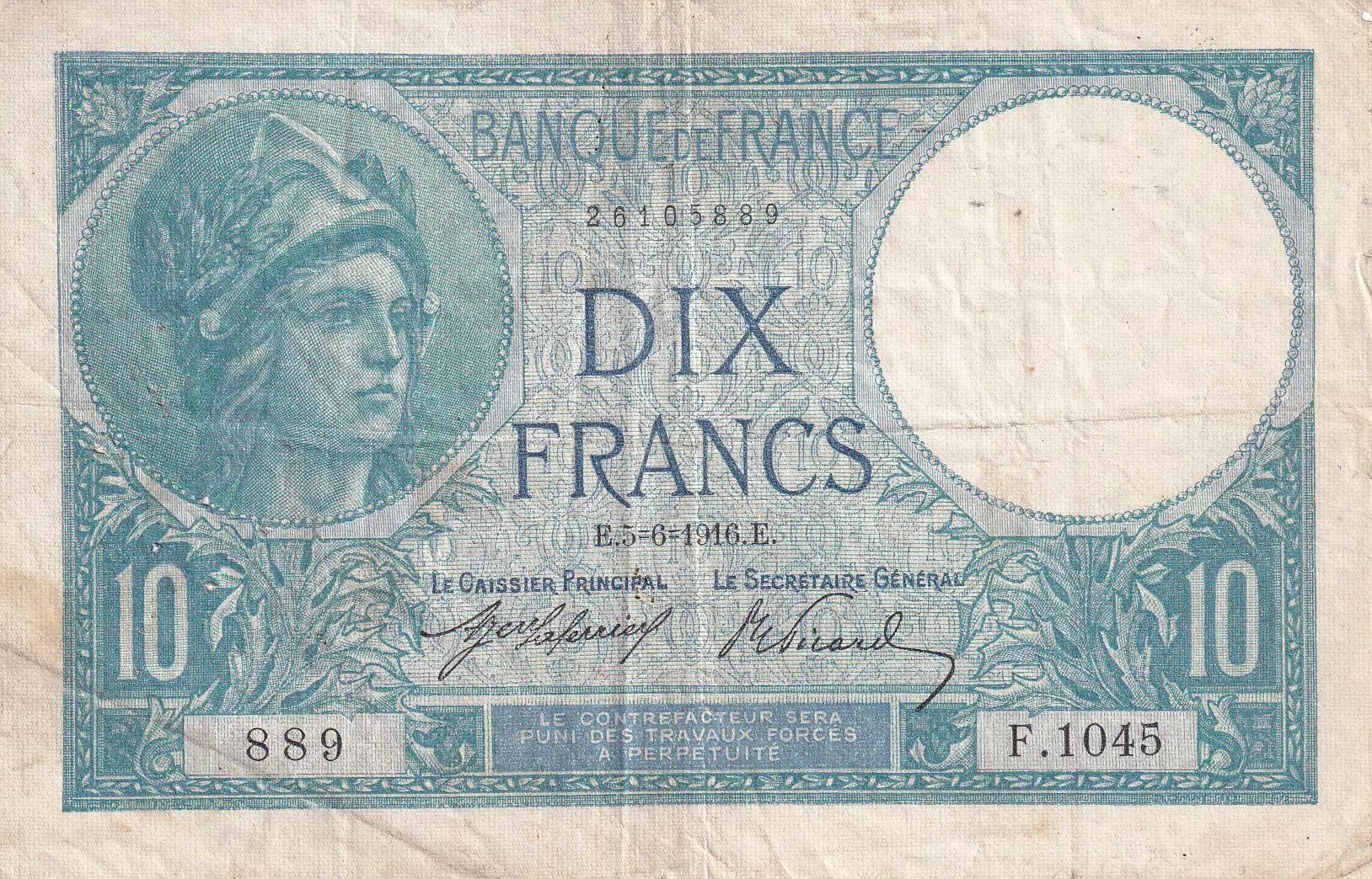 Billet France 10 Francs - Minerve - 05-06-1916 - Série F.1045 - F.06.01