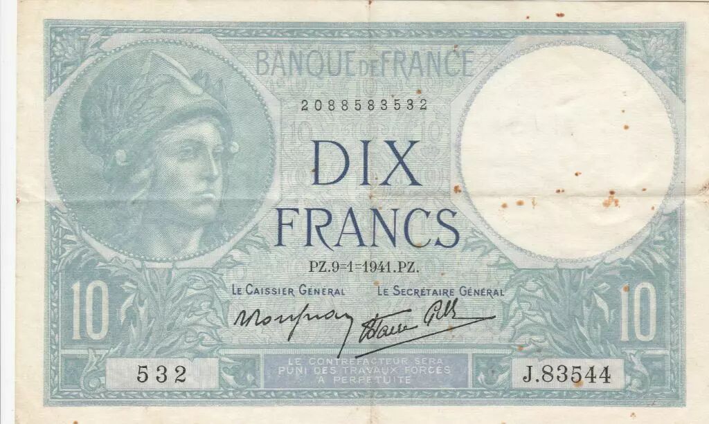 Accueil > Archivage > France 10 Francs Minerve - 09-01-1941 - Série J.83544