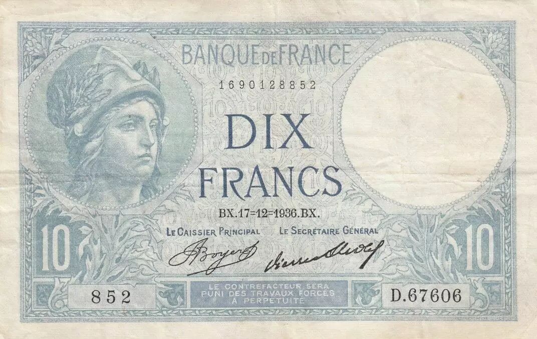 Billet France 10 Francs Minerve - 17-12-1936 - Série D.67606