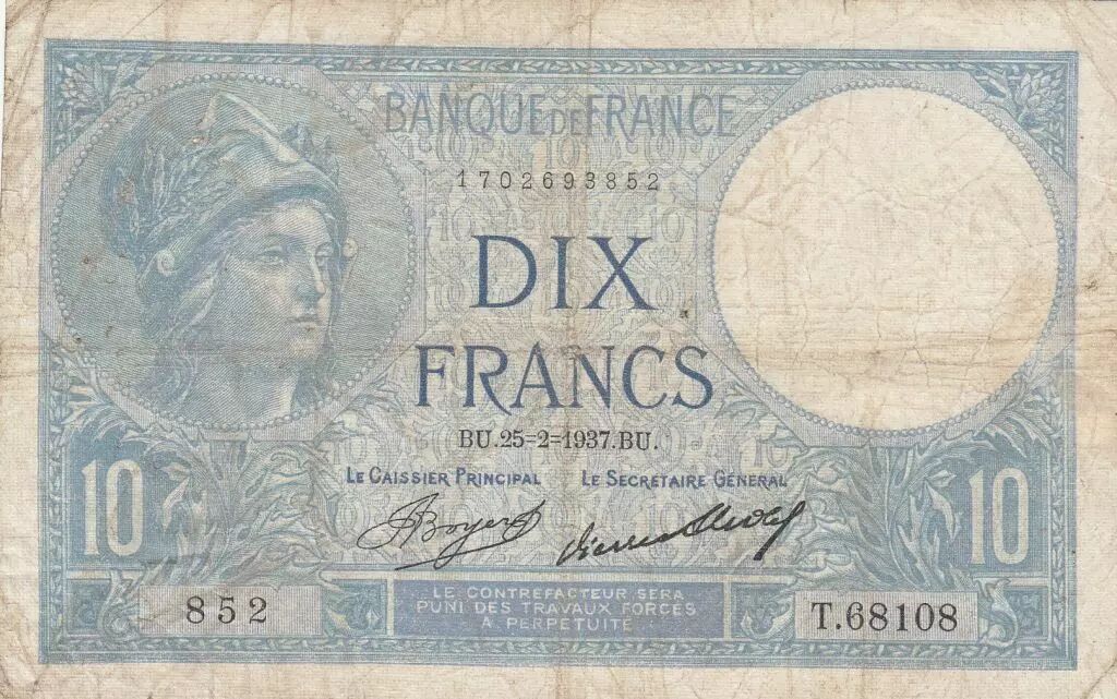 Accueil > Archivage > France 10 Francs Minerve - 25-02-1937 - Série T.68108
