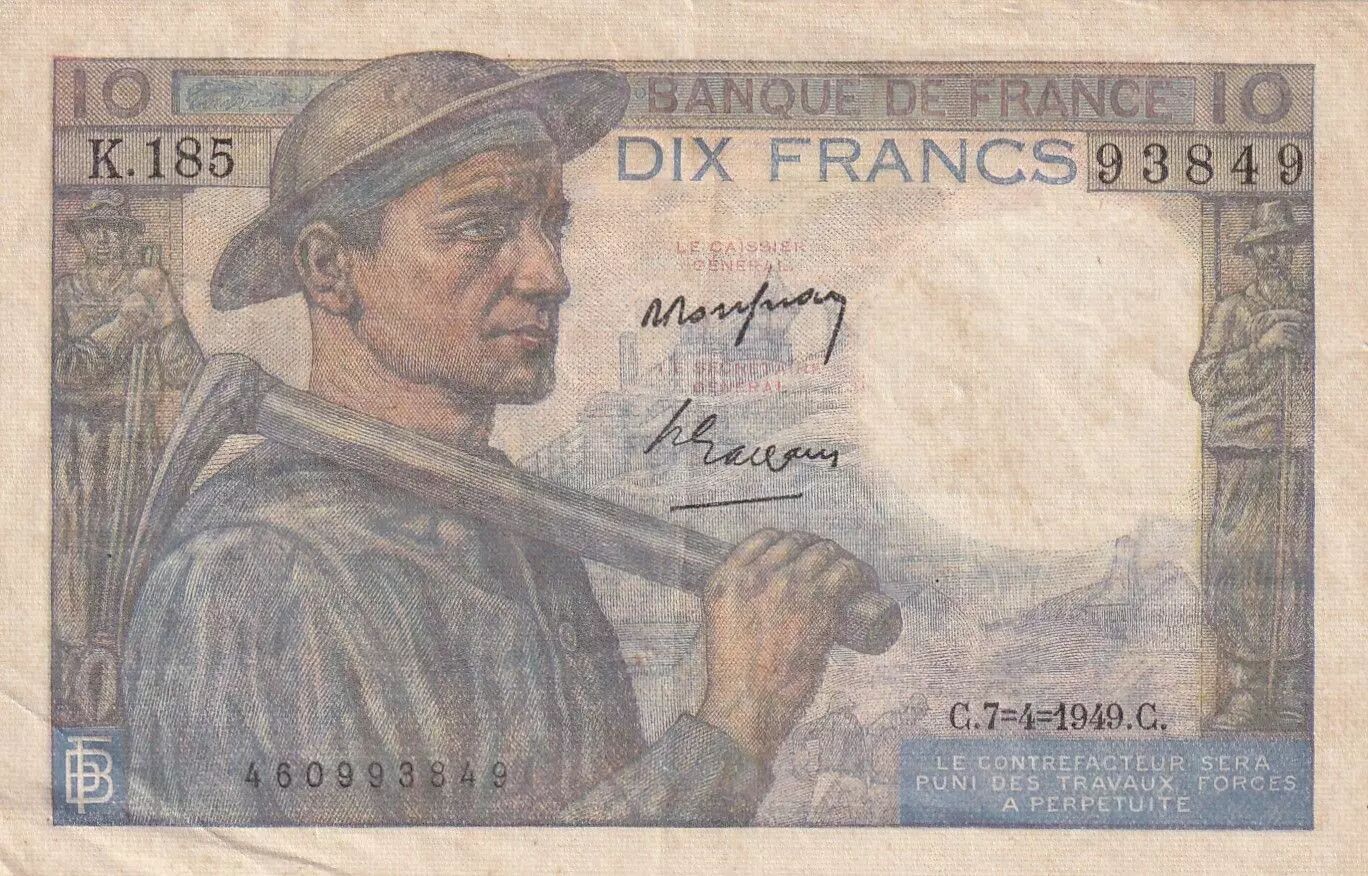 Accueil > Archivage > France 10 Francs Mineur - 07-04-1949 Série K.185