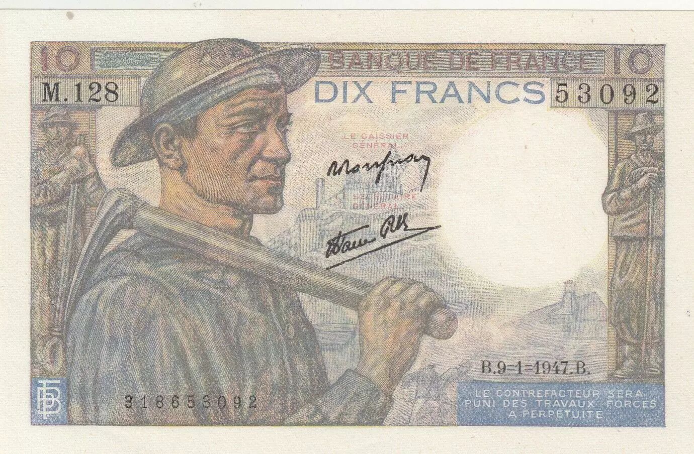 Billet France 10 Francs - Mineur - 09-01-1947 - Série M.128