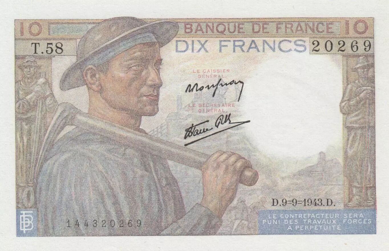 Billet France 10 Francs - Mineur - 09-09-1943 - Série T.58