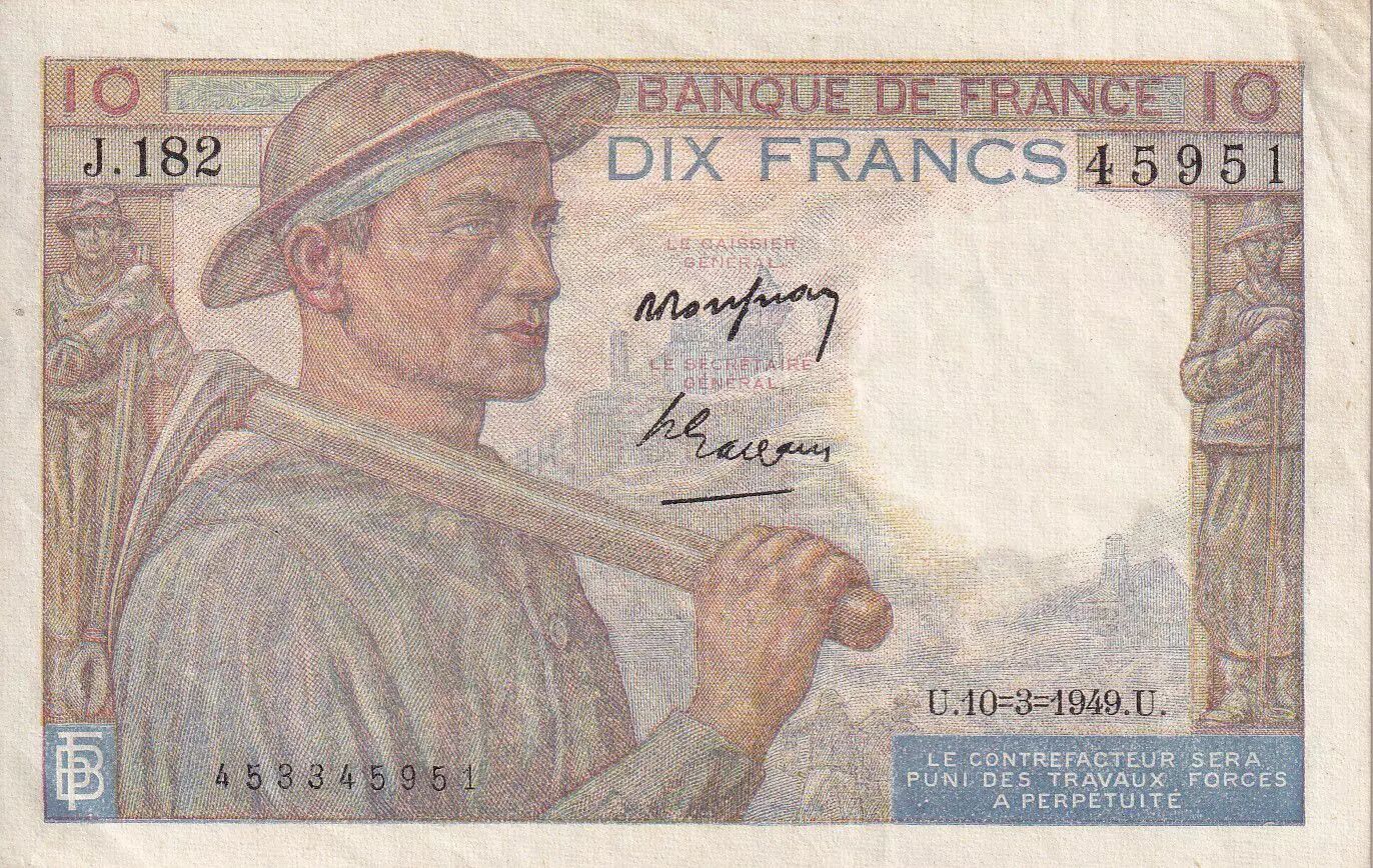 Accueil > Archivage > France 10 Francs - Mineur - 10-03-1949 - Série J.182 - F.08.20