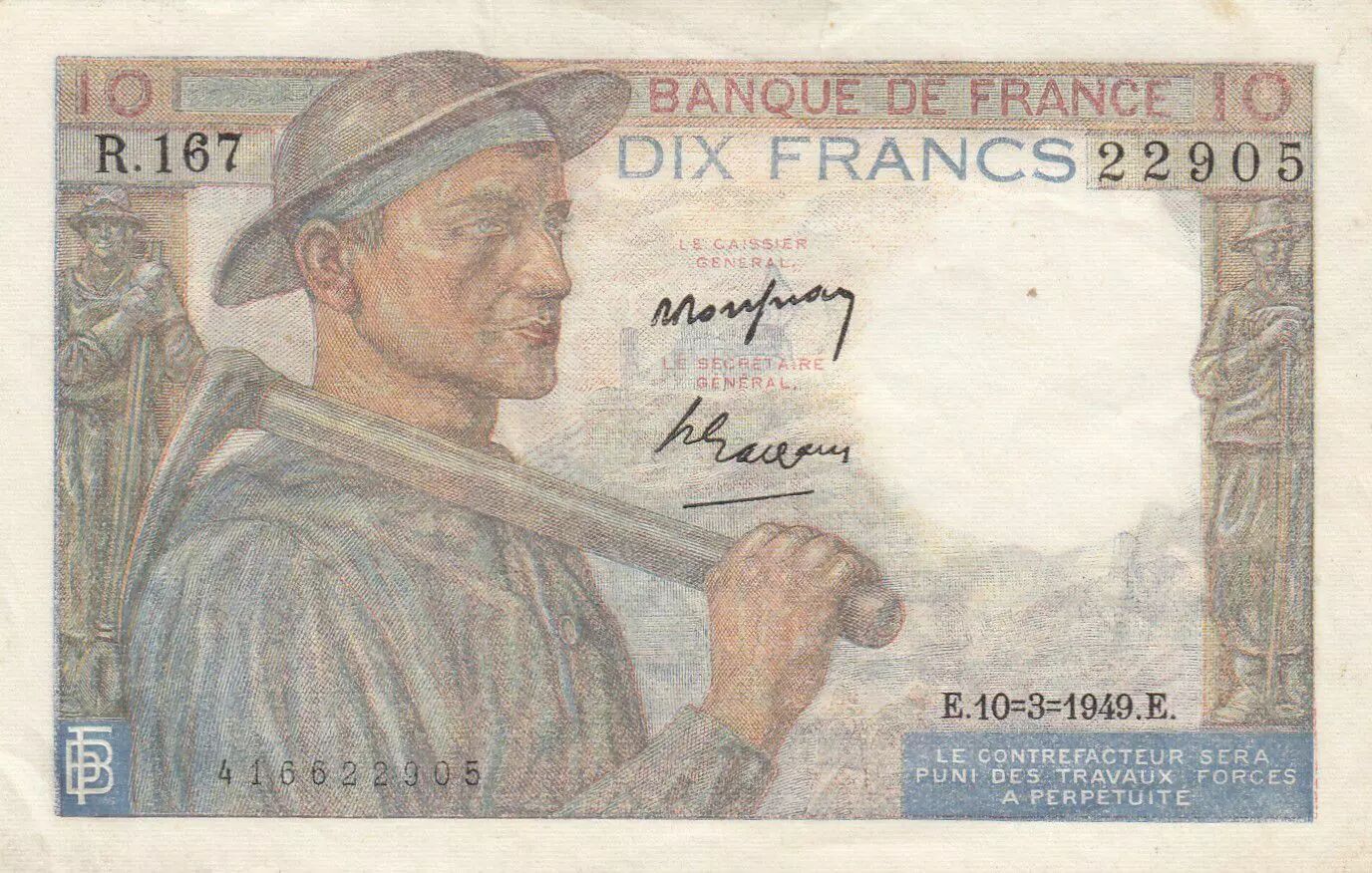 Billet France 10 Francs Mineur - 10-03-1949 Série R.167 - TTB