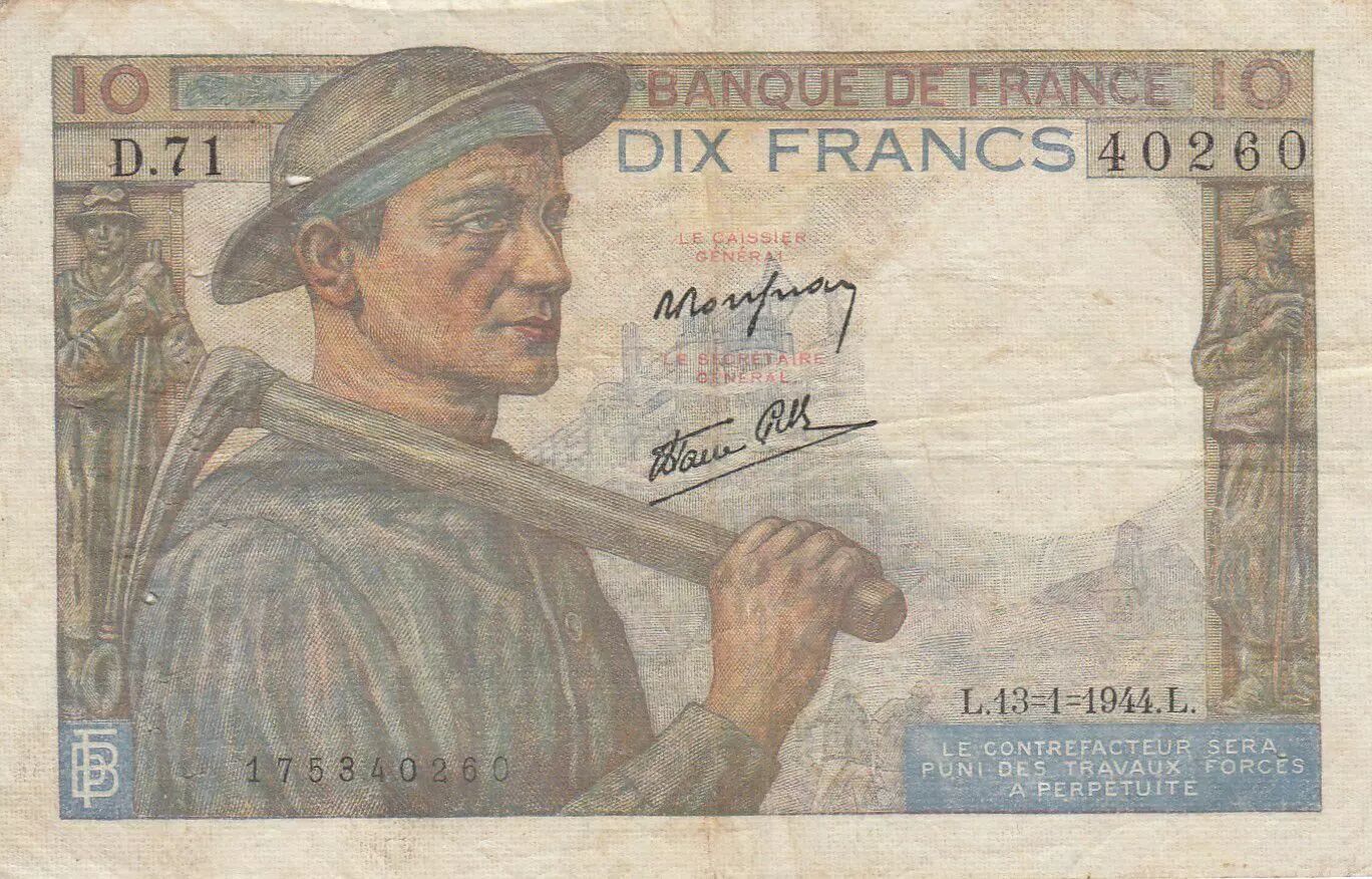 Billet France 10 Francs Mineur - 13-01-1944 Série D.71