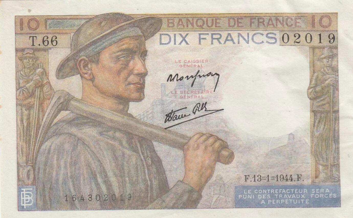 Accueil > Archivage > France 10 Francs - Mineur - 13-01-1944 - Série T.66