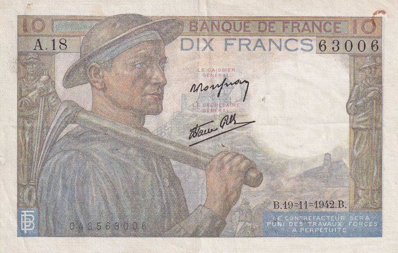 Billet France 10 Francs - Mineur - 19-11-1942 - Série A.18 - F.08.05