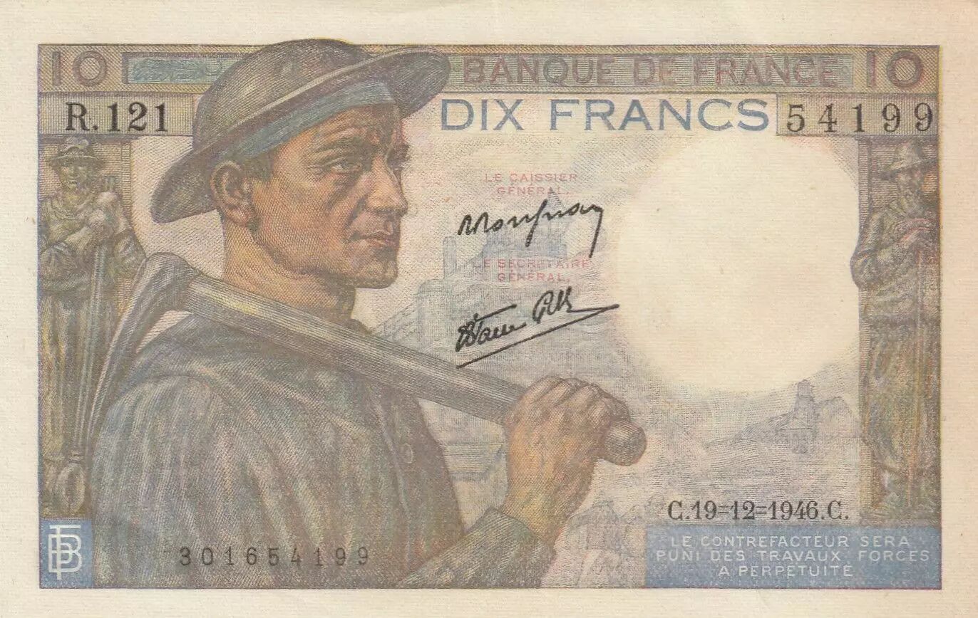 Billet France 10 Francs - Mineur - 19-12-1946 - Série R.121