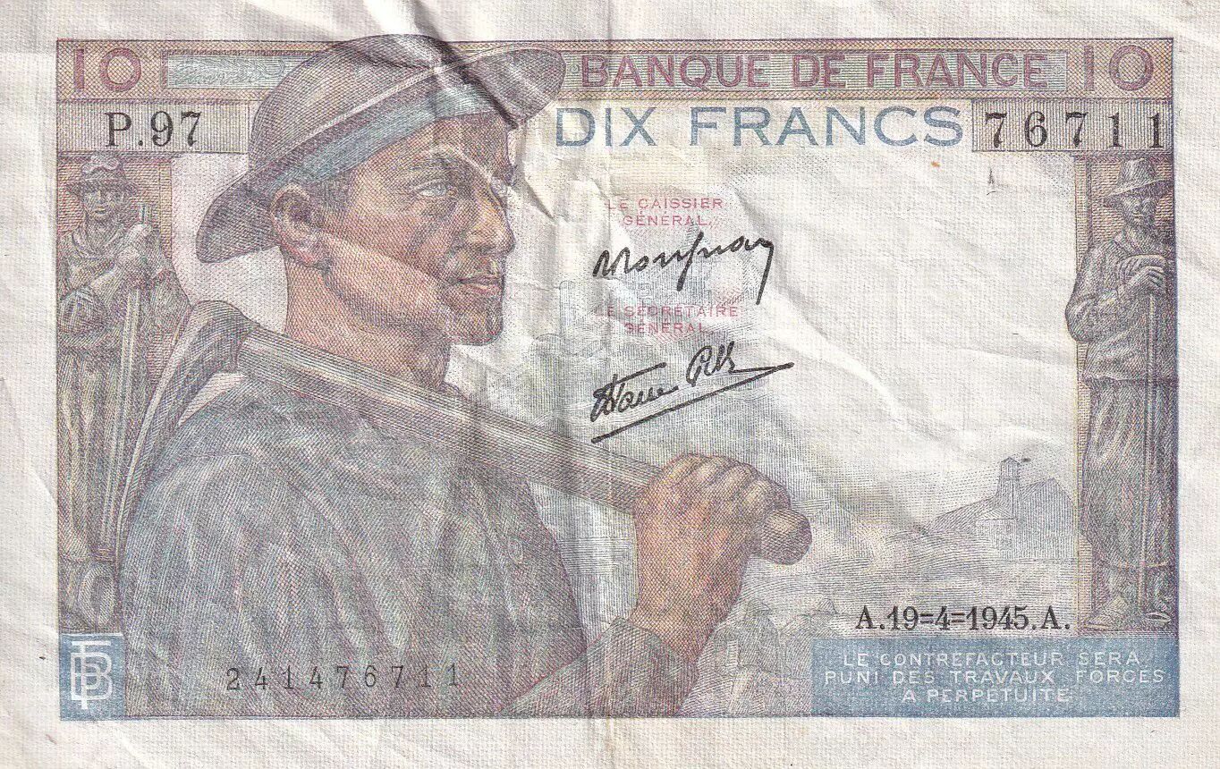 Home > > France 10 Francs - Mineur - 1945 - Serial P.97 - VF - P.99