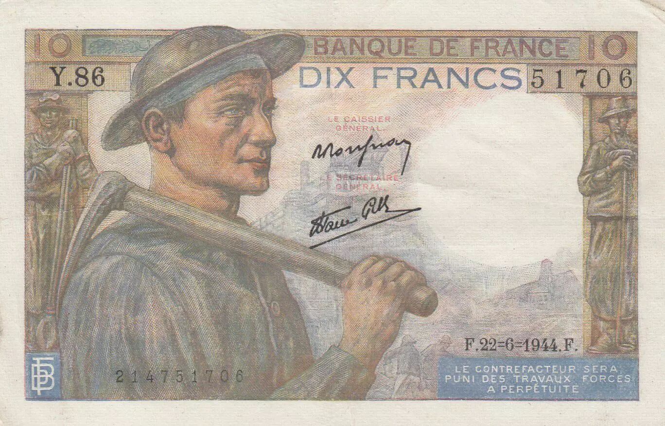 Accueil > Archivage > France 10 Francs Mineur - 22-06-1944 Série Y.86 - TTB