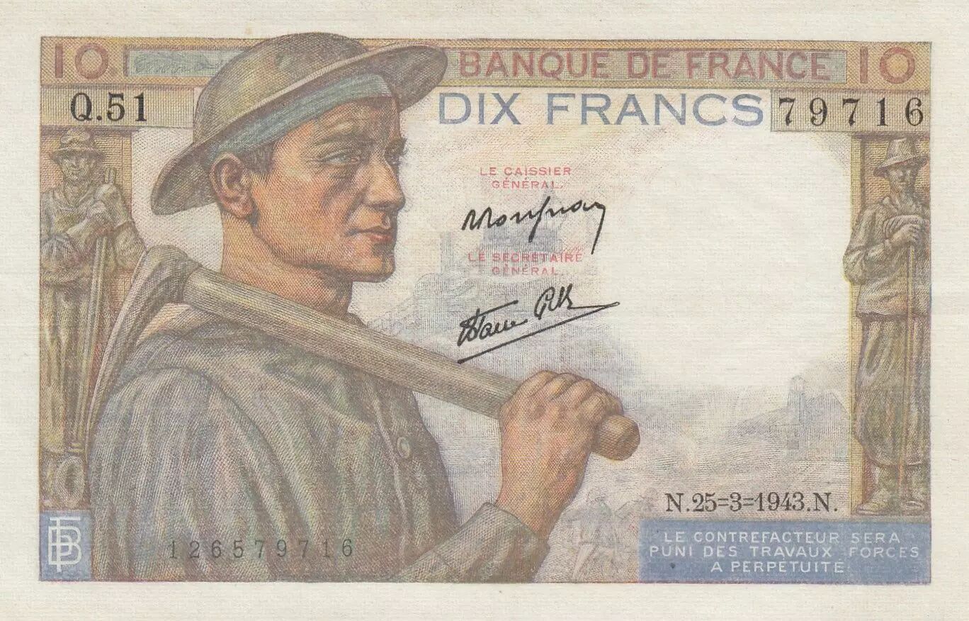 Billet France 10 Francs - Mineur - 25-03-1943 - Série Q.51