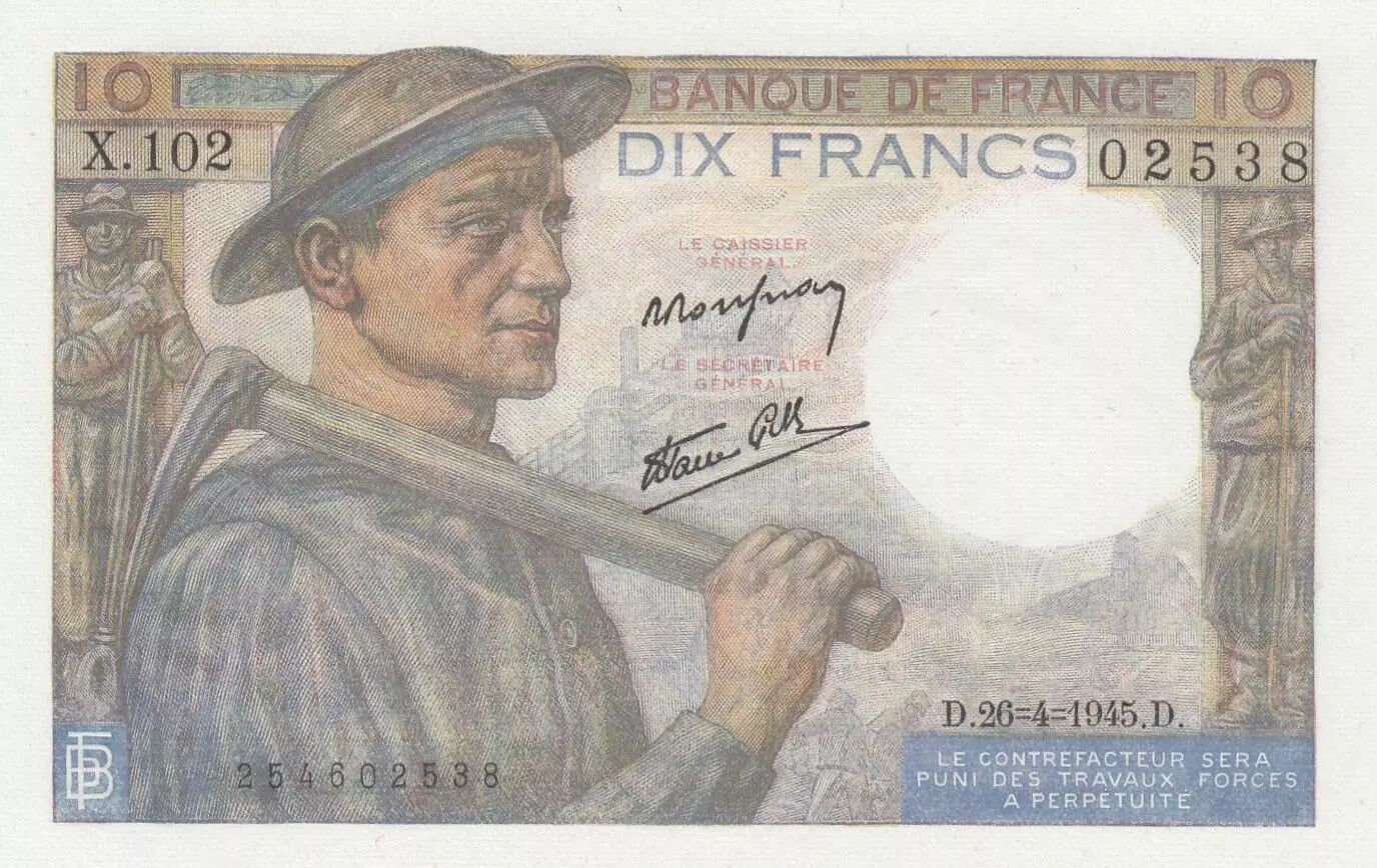 Billet France 10 Francs - Mineur - 26-04-1945 - Série X.102