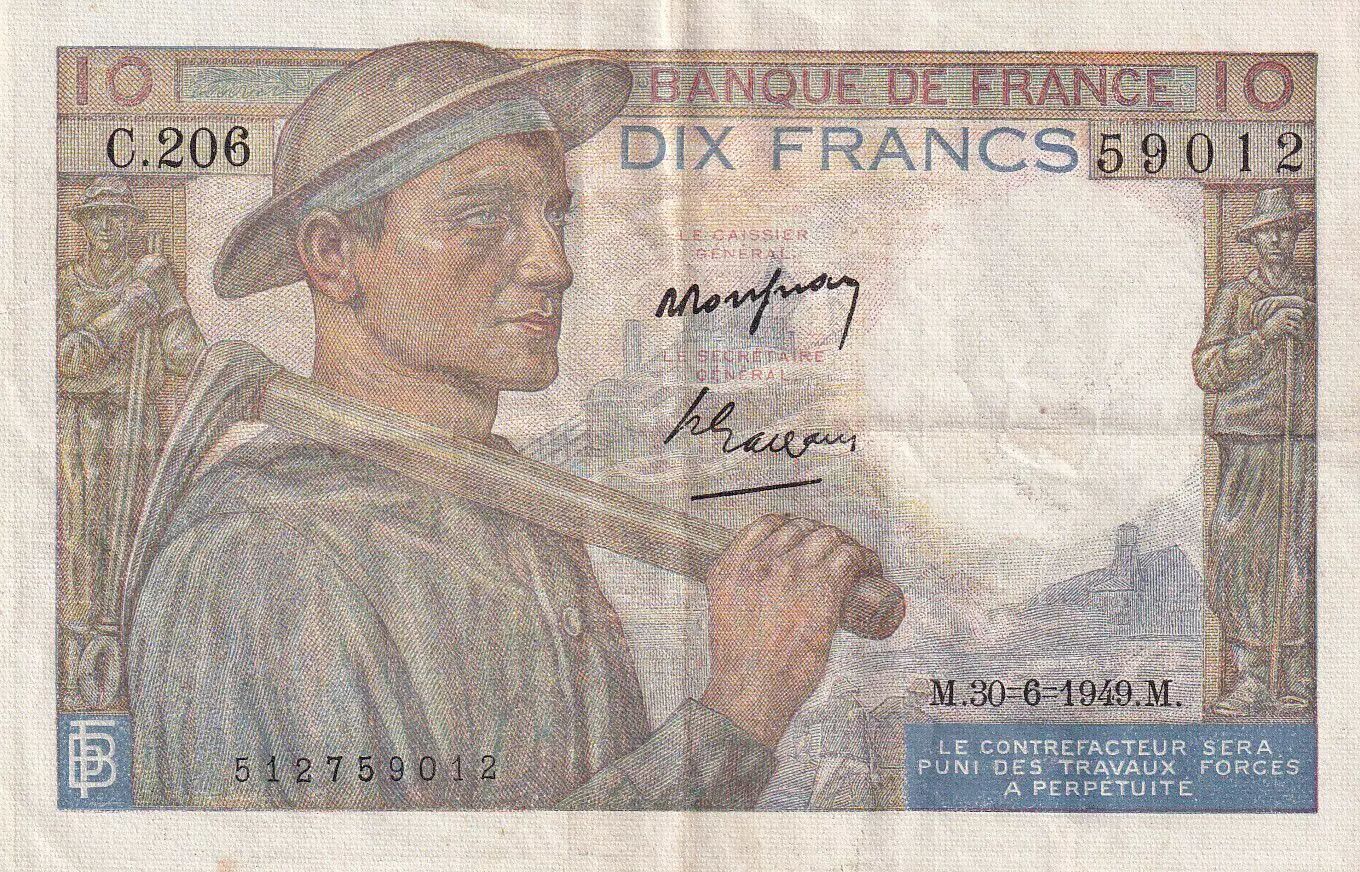 Accueil > Billets Français > Billets Banque de France > Billets 10 Francs > Mineur type 1941 (1941-1949) > France 10 Francs - Mineur - 30-06-1949 - Série C.206 - F.08.22a