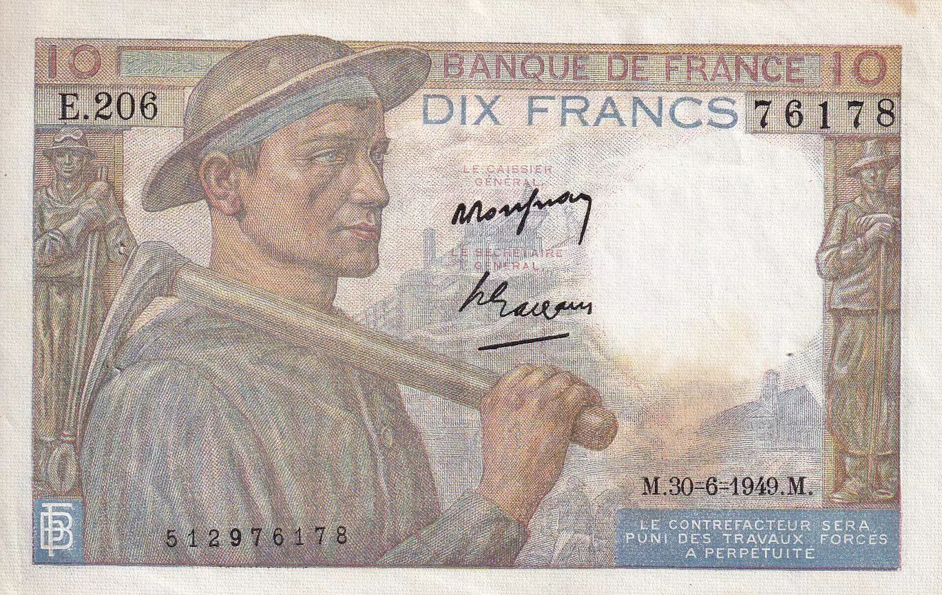 Accueil > Archivage > France 10 Francs - Mineur - 30-06-1949 - Série E.206 - F.08.22a