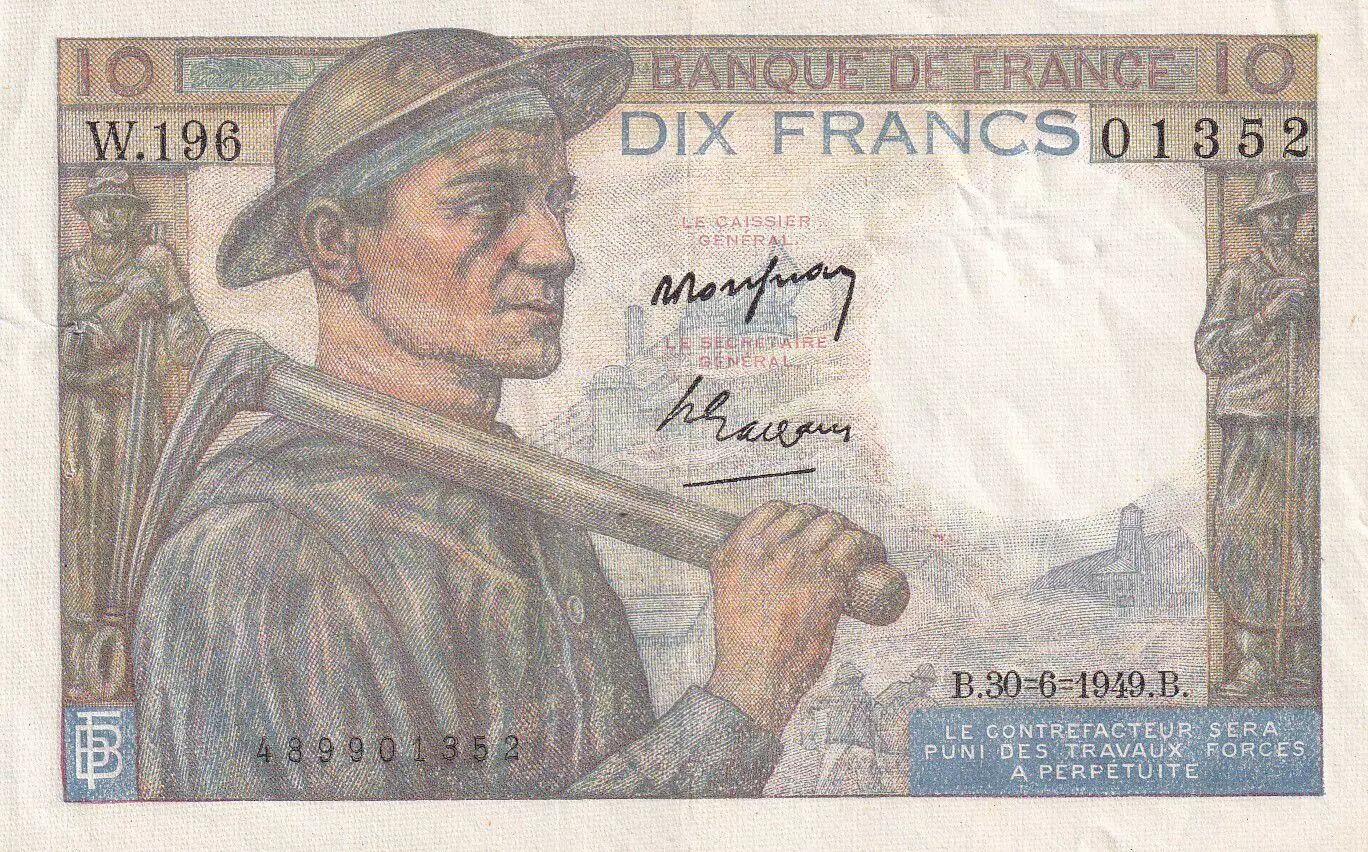 Billet France 10 Francs - Mineur - 30-06-1949 - Série W.196 - F.08.22