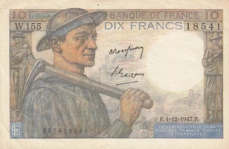 Home > > France 10 Francs - Minor - 04-12-1947 - Serial W.155