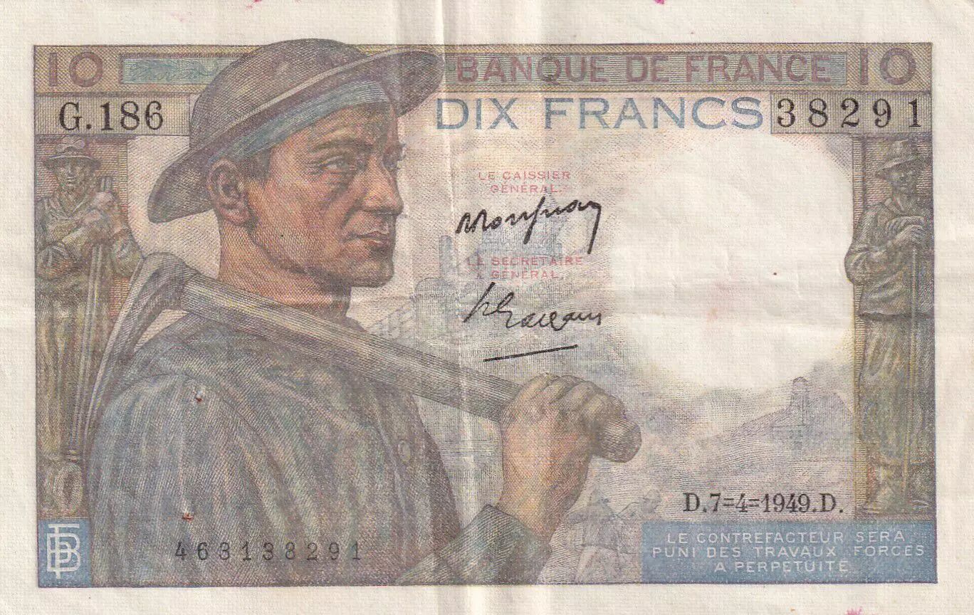 Home > > France 10 Francs - Minor - 07-04-1949 - Serial G.186 - P.99