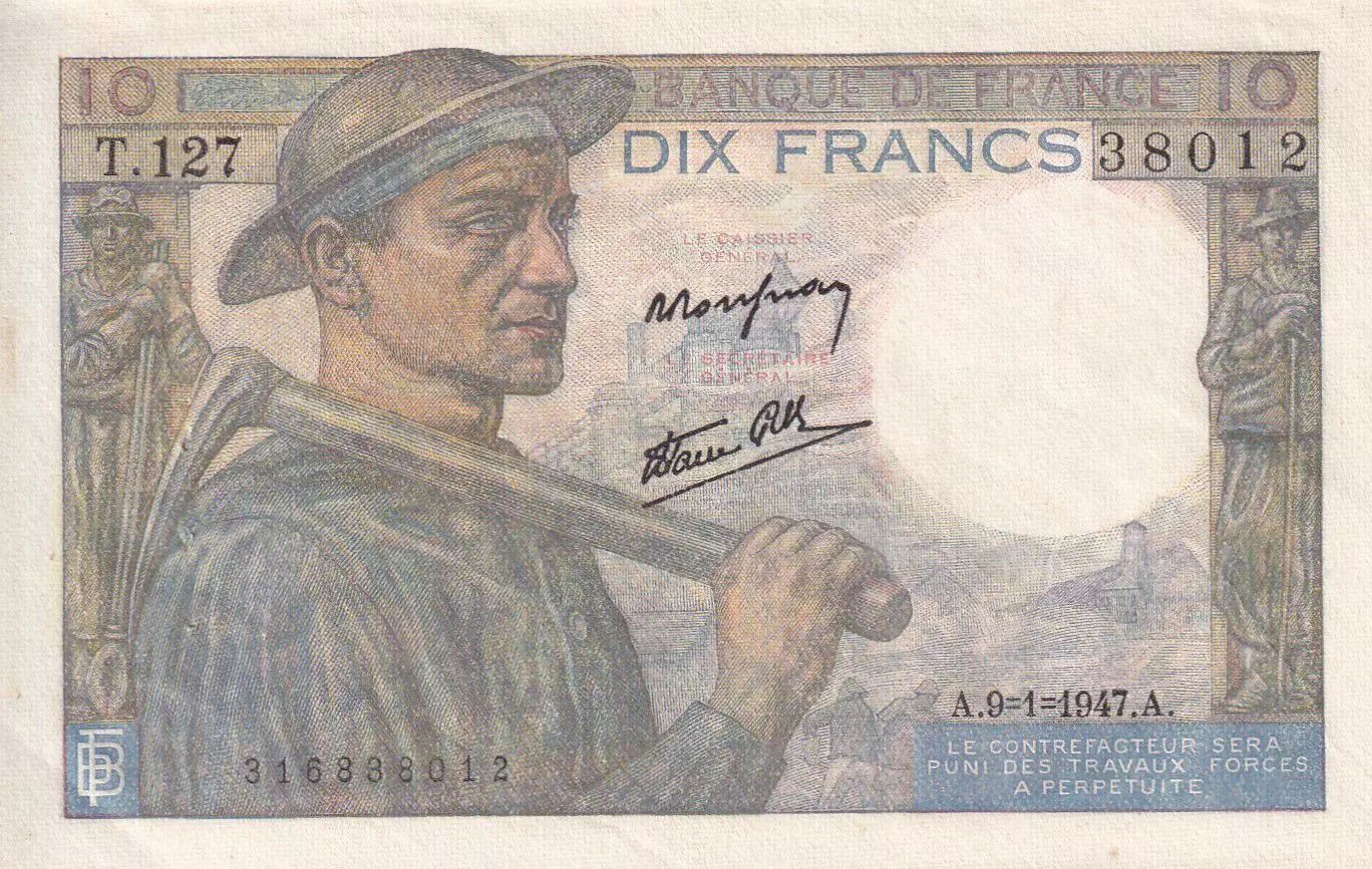 Home > > France 10 Francs - Minor - 09-01-1947 - Serial T.127 - P.99