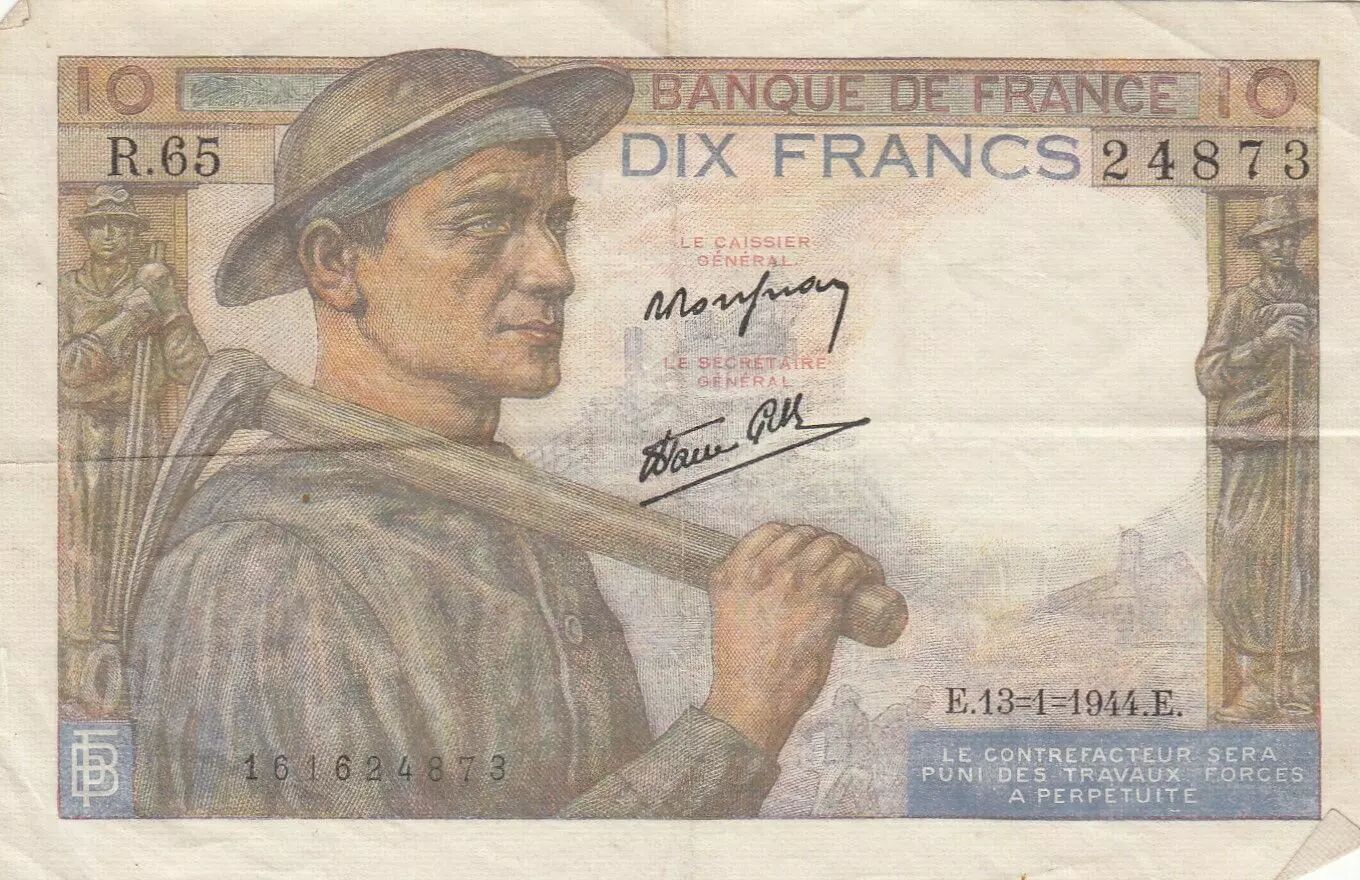 Banknote France 10 Francs - Minor - 13-01-1944 - Serial R.65