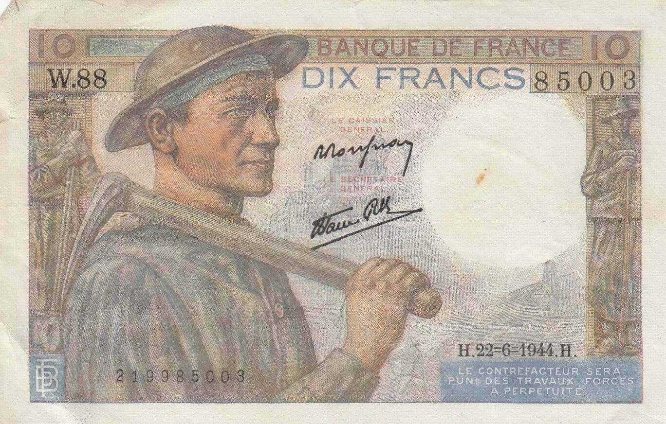 Home > > France 10 Francs - Minor - 22-06-1944 - Serial W.88