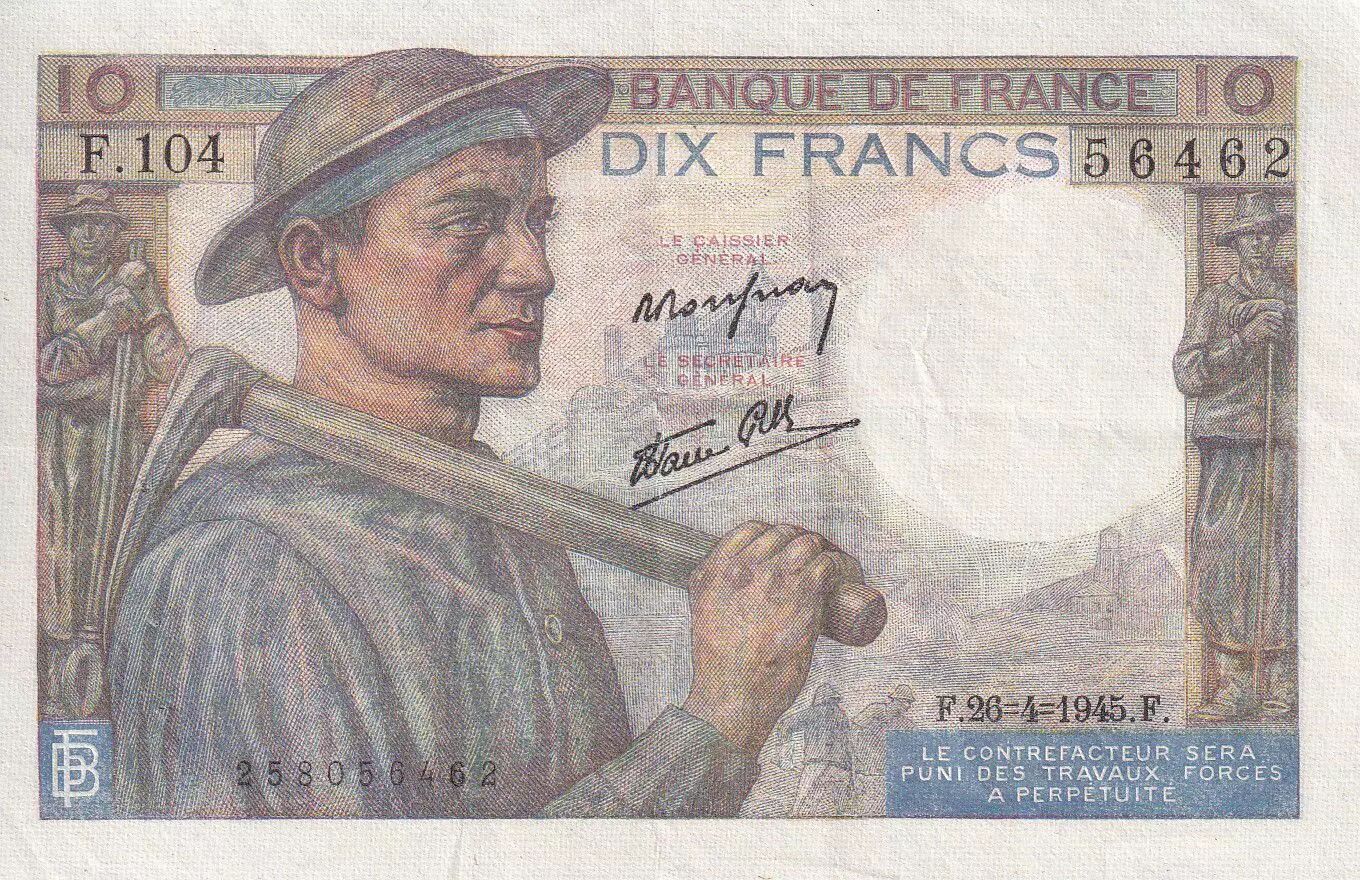 Home > > France 10 Francs - Minor - 26-04-1945 - Serial F.104 - P.99