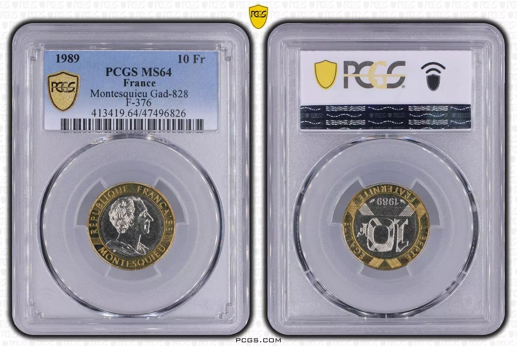 Accueil > Monnaies Gradées Françaises > France 10 Francs - Montesquieu - 1989 Frappe Courante - PCGS MS 64