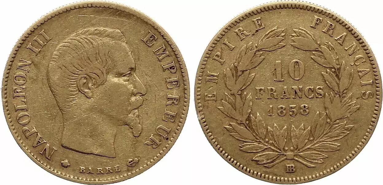 Coin France 10 Francs Napoleon III Empereur - 1858 BB Strasbourg - Gold