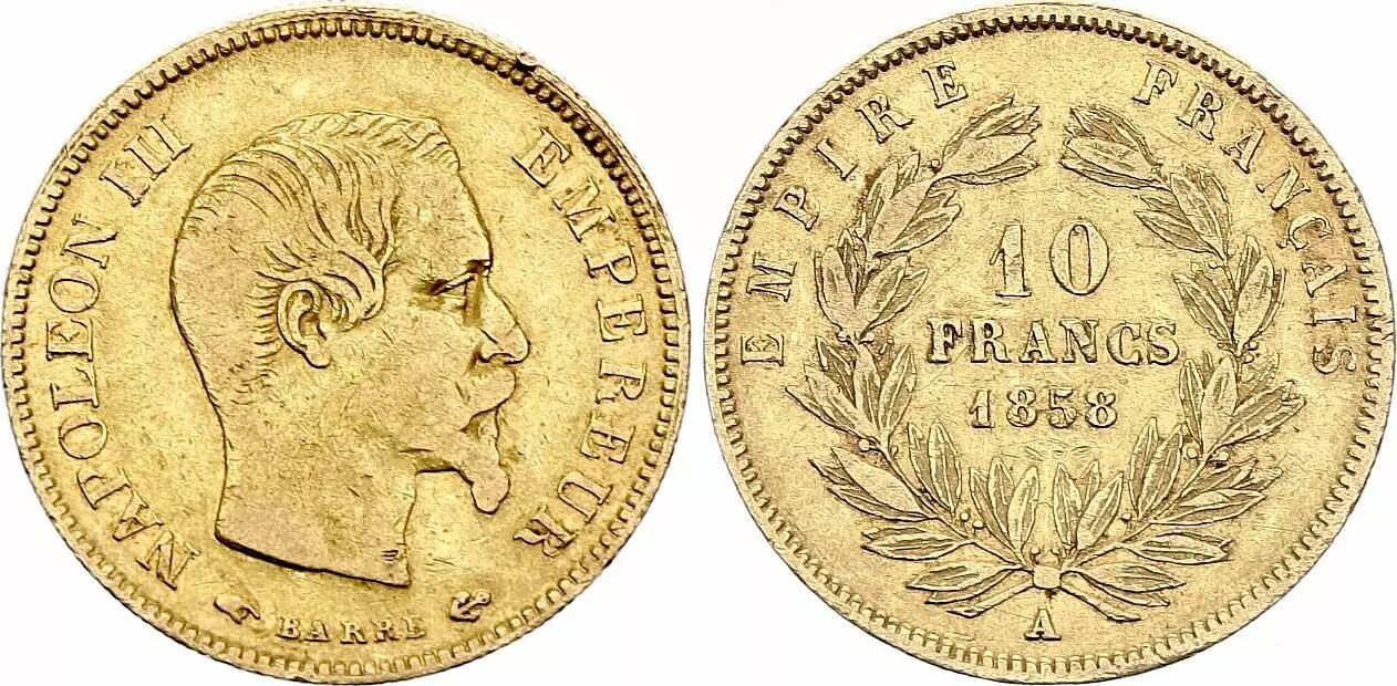 Pièce France 10 Francs Napoléon III - Tête nue 1858 A Or