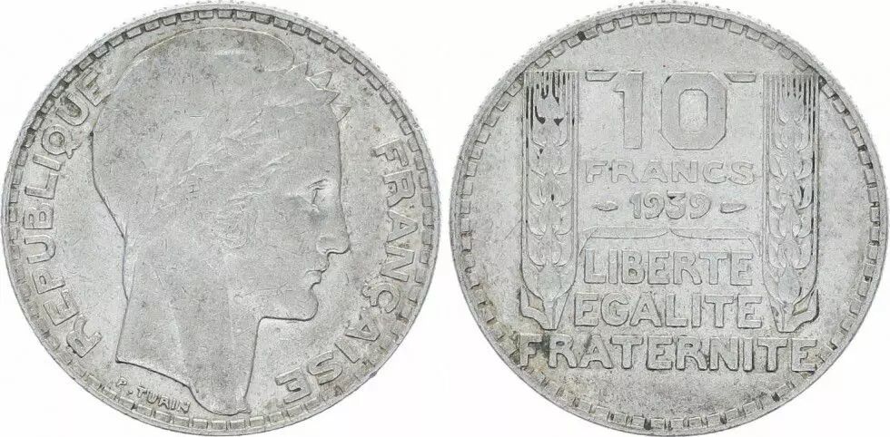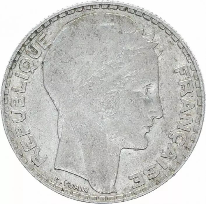 La pièce de 10 Francs Turin, frappée en argent, est une pièce de monnaie française émise en 1939. Sa valeur nominale est de 10 francs, l'unité monétaire de la France à cette époque.