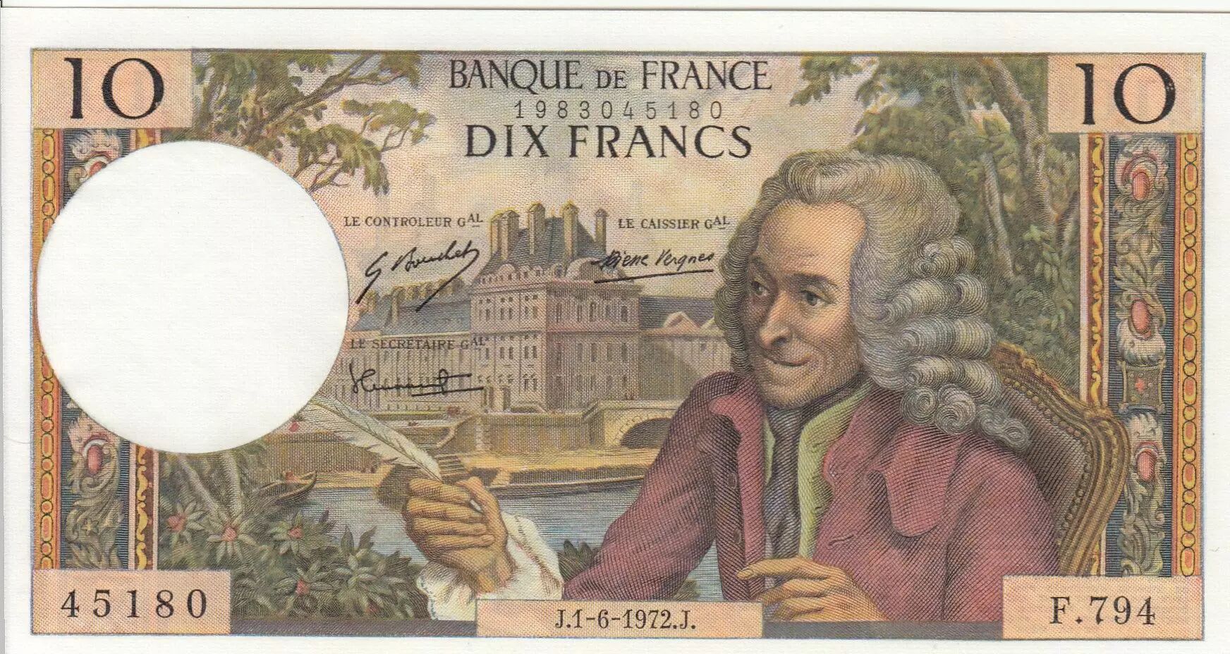 Home > > France 10 Francs - Voltaire - 01-06-1972 - Serial F.794