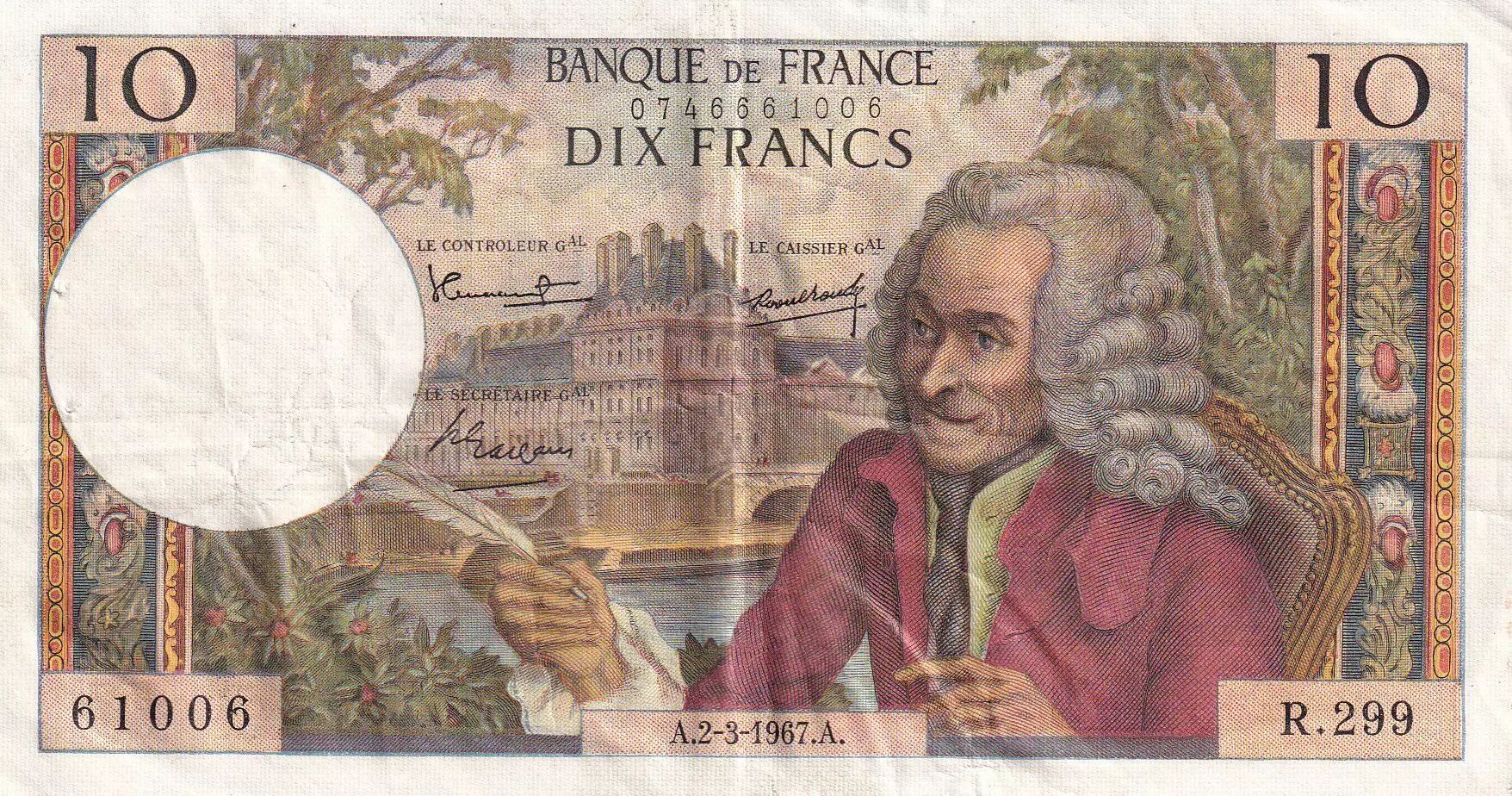 Accueil > Archivage > France 10 Francs - Voltaire - 02-03-1967 - Série R.299 - F.62.25