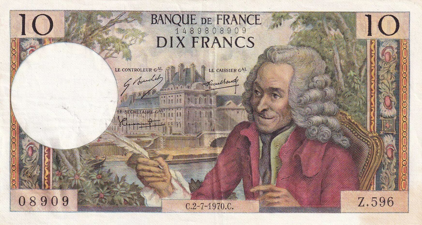 Home > > France 10 Francs - Voltaire - 02-07-1970 - Serial Z.596 - P.147