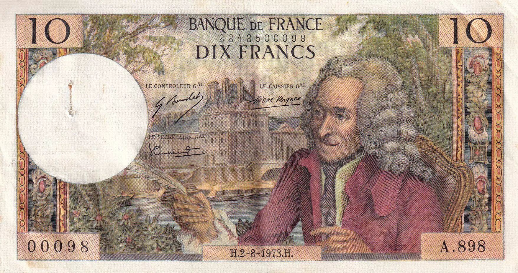 Banknote France 10 Francs - Voltaire - 02-08-1973 - Serial A898 - P.147