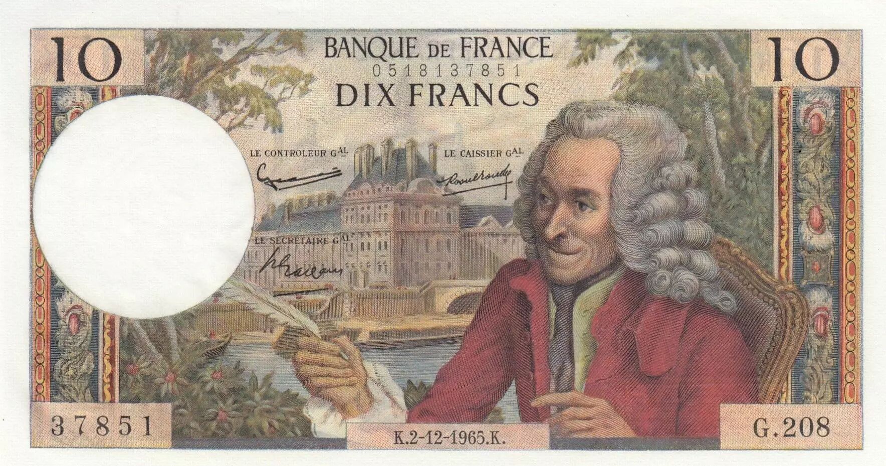 Home > > France 10 Francs - Voltaire - 02-12-1965 - Serial G.208