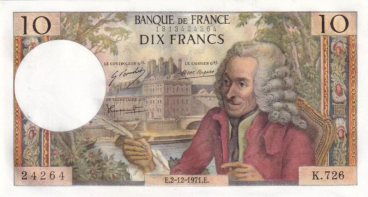 Banknote France 10 Francs Voltaire - 02-12-1971 Serial K.726