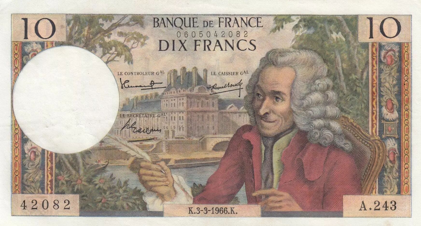 Home > > France 10 Francs - Voltaire - 03-03-1966 - Serial A.243