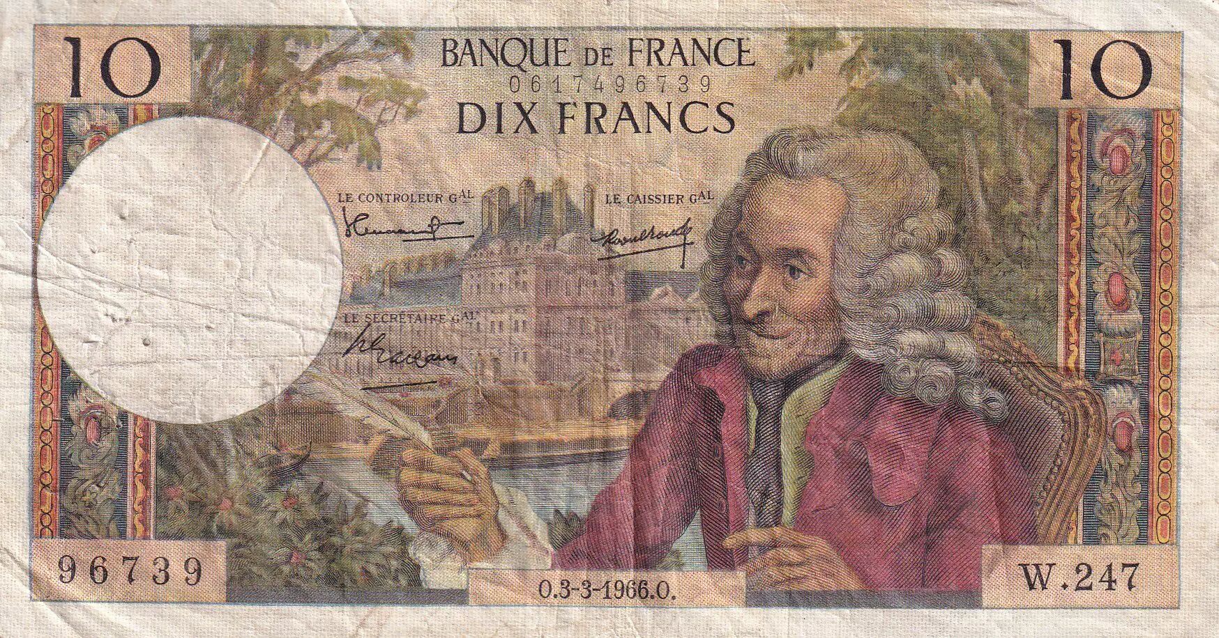 Home > > France 10 Francs - Voltaire - 03-03-1966 - Serial W.247 - P.147