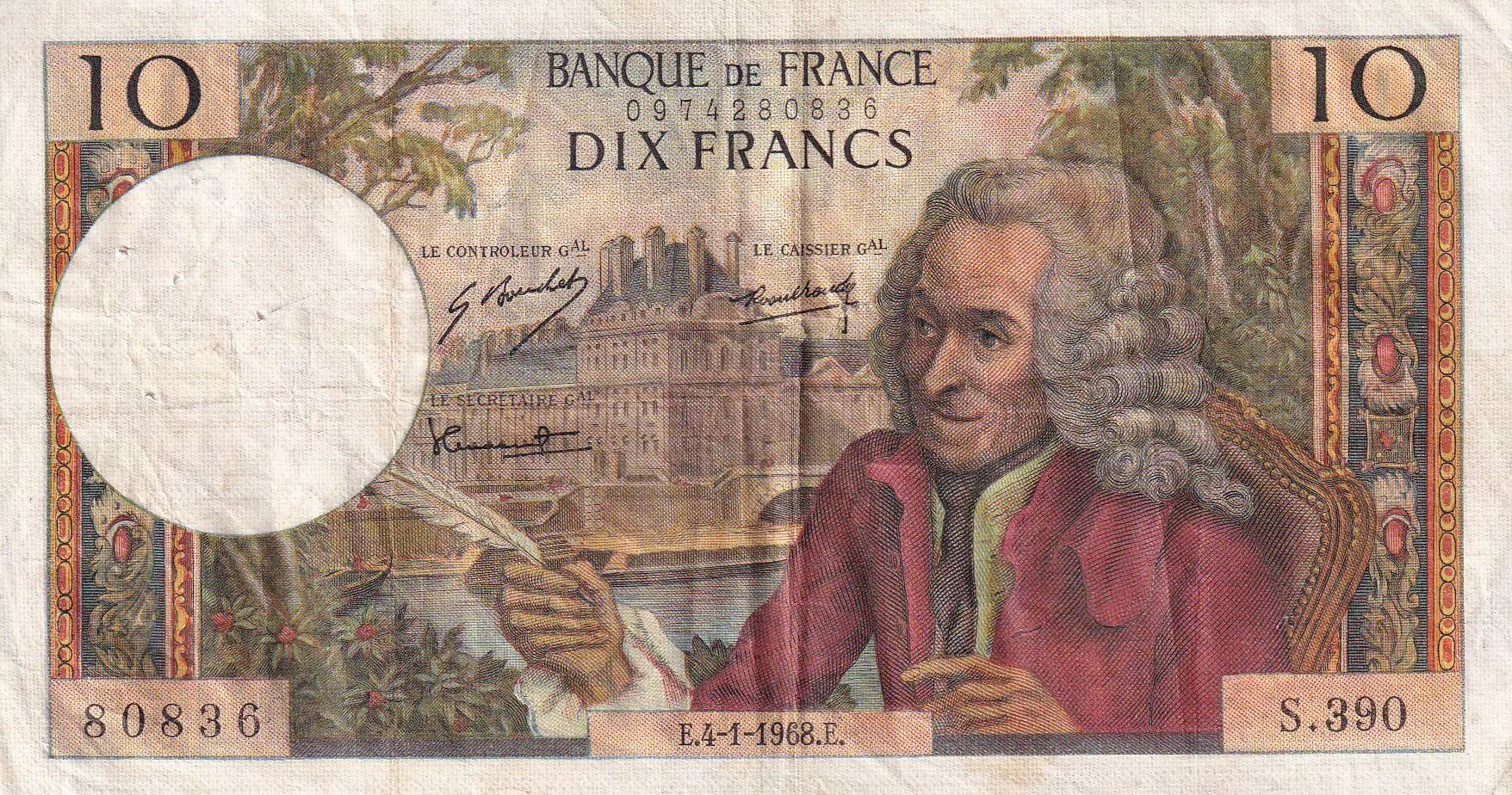 Accueil > Archivage > France 10 Francs - Voltaire - 04-01-1968 - Série S.390 - F.62.31