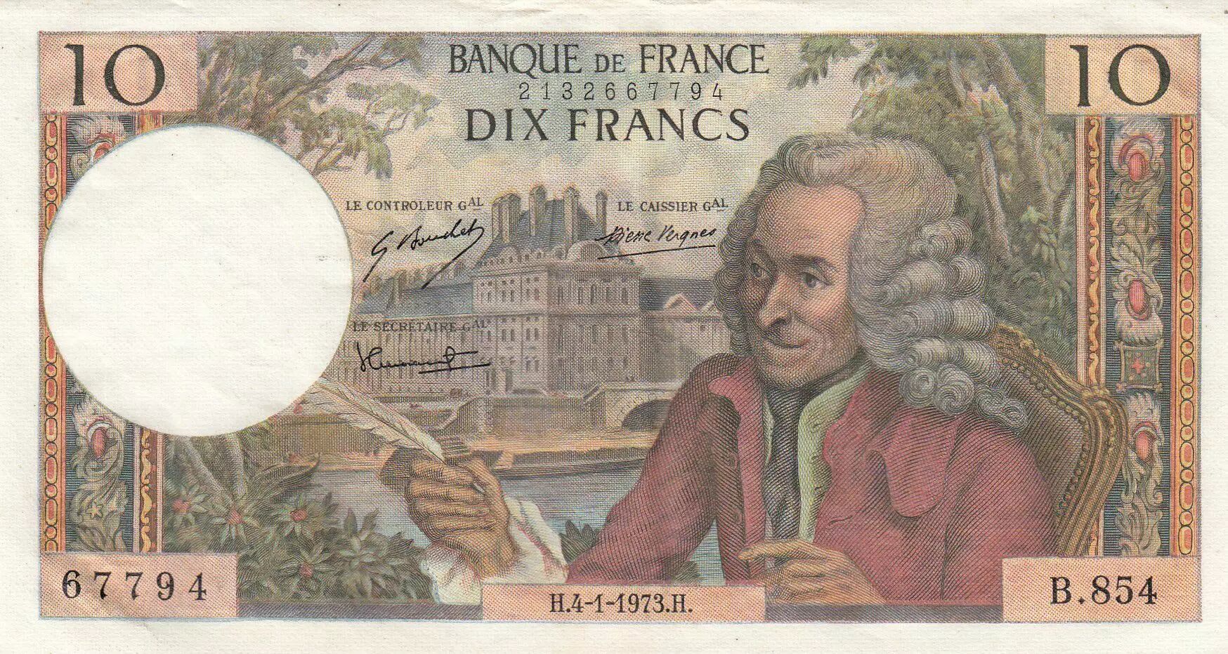Home > > France 10 Francs Voltaire - 04-01-1973 Serial B.854