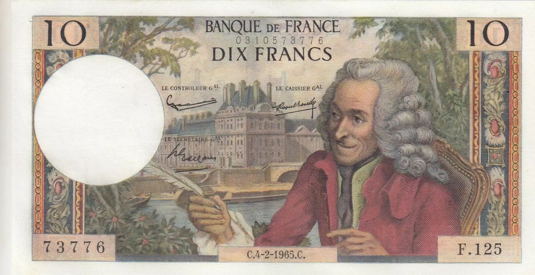 Banknote France 10 Francs - Voltaire - 04-02-1965 - Serial F.125