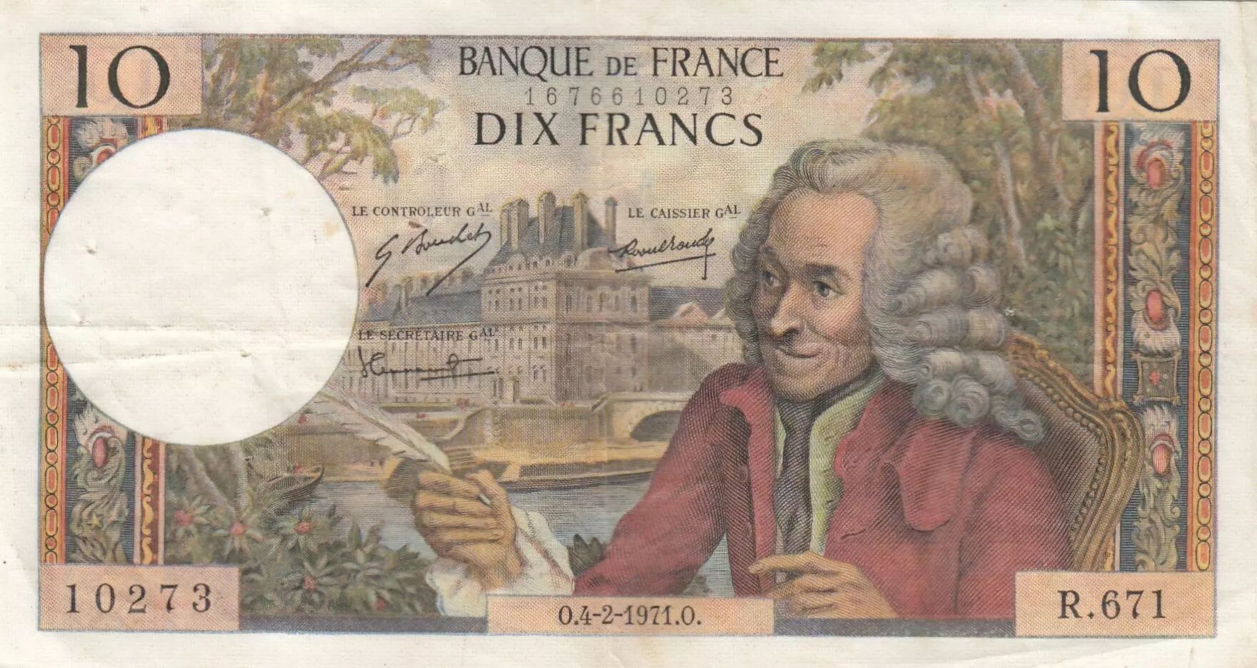 Billet France 10 Francs - Voltaire - 04-02-1971 - Série R.671