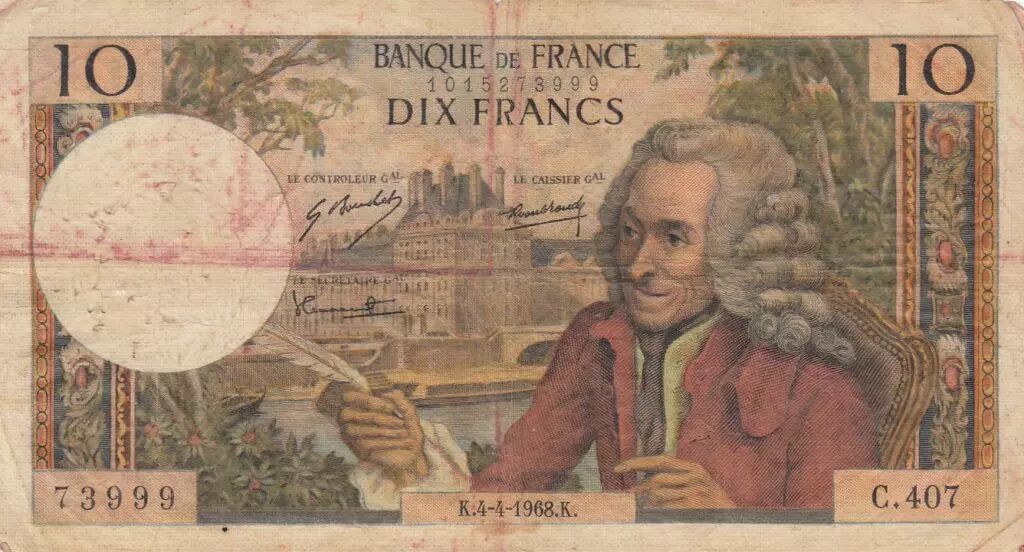 Banknote France 10 Francs Voltaire - 04-04-1968 - Serial C.407