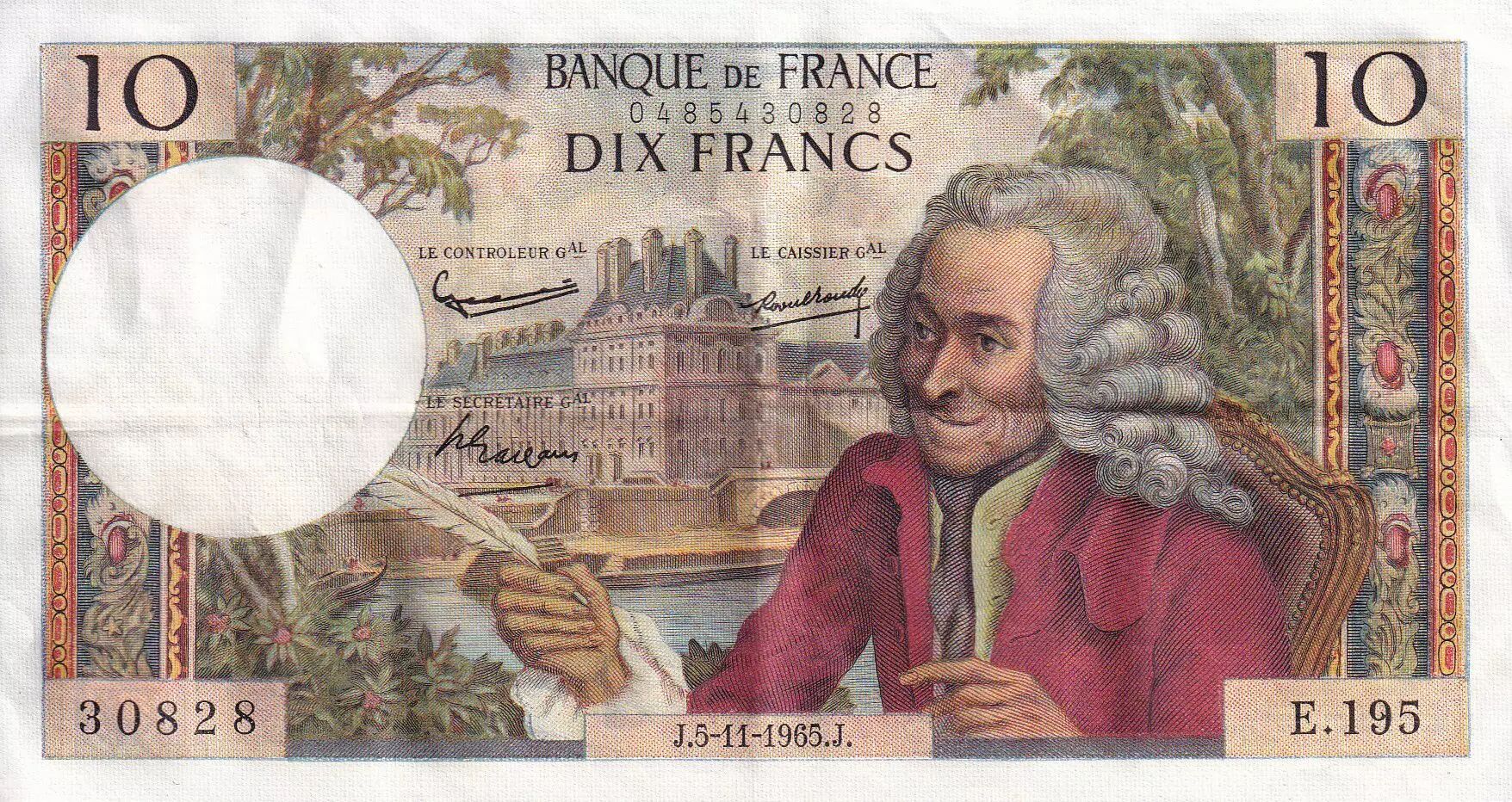Home > > France 10 Francs - Voltaire - 05-11-1965 - Serial E.195 - VF to XF - P.147