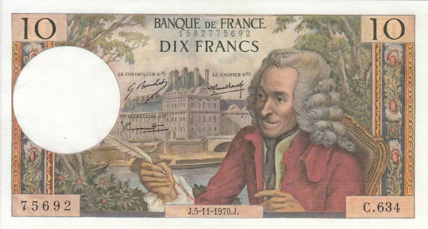 Home > > France 10 Francs - Voltaire - 05-11-1970 - Serial C.634