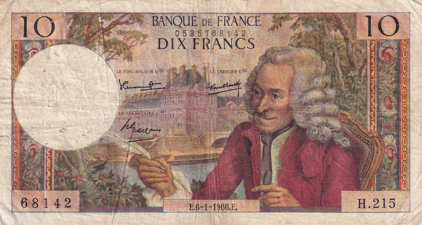 Accueil > Archivage > France 10 Francs - Voltaire - 06-01-1966 - Série H.215 - F.62.19